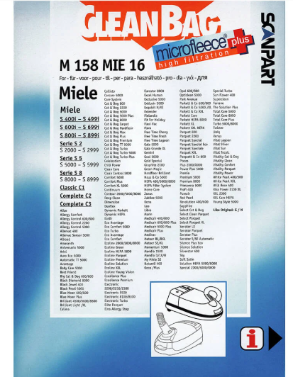 CLEANBAG Microfleece+ Dustbag Miele G/H/N 4+1 M 158 MIE 16