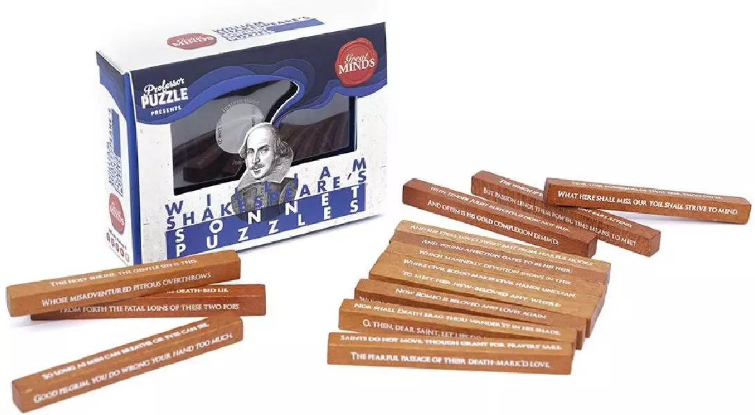 Det er på tide å kanalisere litt av Shakespeares poetiske frihånd! Hver av disse treklossene har linjer fra fire av den store forfatterens berømte sonetter. Kan du sette dem i riktig rekkefølge og deretter resitere dem?